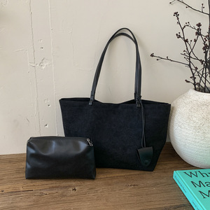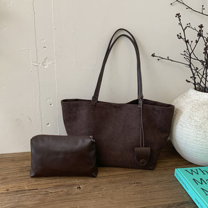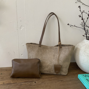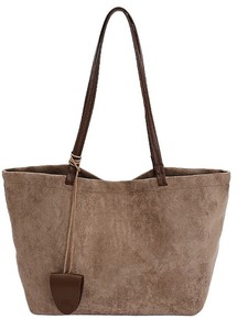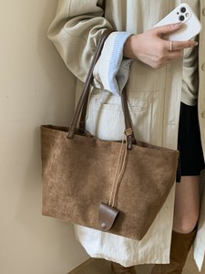 韩国复古麂皮绒手提托特包包女2025秋冬新款潮时尚通勤单肩腋下包