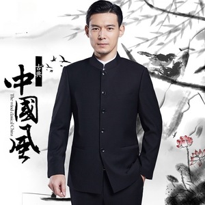 立领中山装套装男士中华立领中老年西服上班服结婚礼服爸爸装