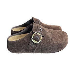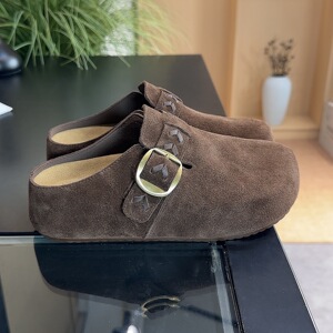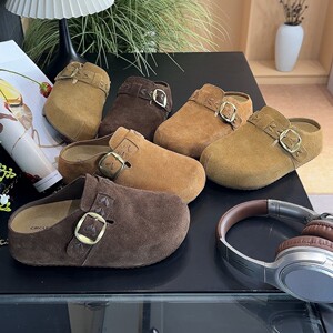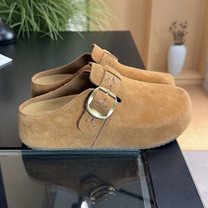 勃肯半拖鞋懒人一脚蹬2025秋季新款真皮厚底包头拖鞋女外穿勃肯鞋