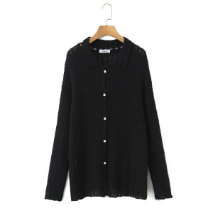温柔风宽松polo领单排扣镂空针织开衫女秋季显瘦外搭休闲毛衣外套
