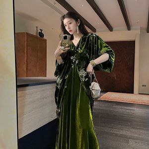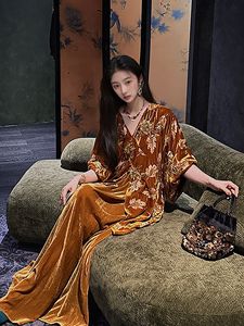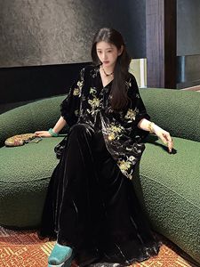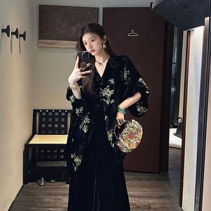 秋季2025新款珠绣丝绒烂花禅意裙国风新中式宽松设计连衣裙 N9026