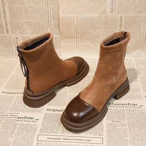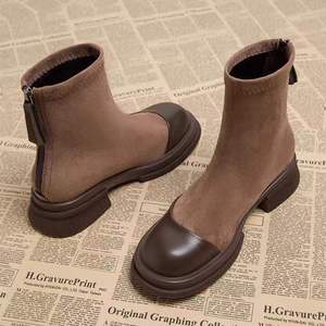 2025年网红淑女韩版炸街高颜值短靴配裙子百搭复古显高靴子女