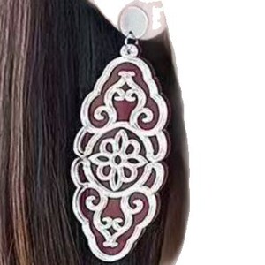 民族风蒙古元素风格中国红花纹耳钉个性气质百搭复古经典耳饰品女