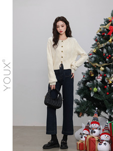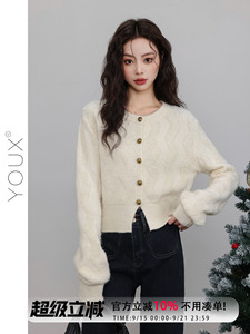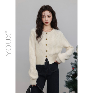 又巷【纯白曲调】温柔风毛衣女2025冬季新款短款圆领宽松针织开衫