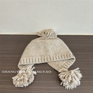 儿童帽子秋冬可爱毛球针织帽男女宝宝保暖户外护耳流苏毛线帽潮童