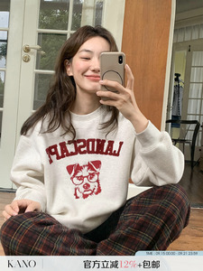 你好卡农 原创眼镜狗狗刺绣圆领加绒卫衣女秋冬新款宽松显瘦上衣