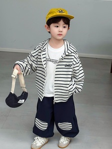 9690男童秋装套装2025新款儿童条纹外套两件套韩系宝宝春秋衣服潮