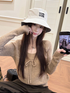 温柔风蝴蝶结系带长袖针织衫女2025秋季新款设计感拼接打底上衣潮