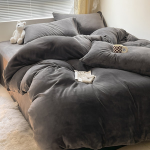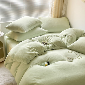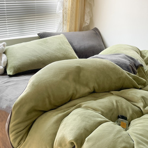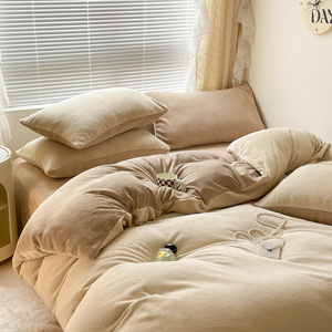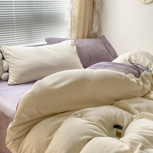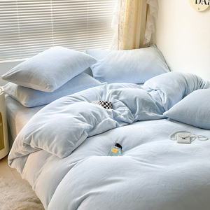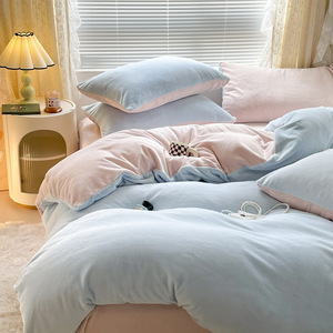 新款insA类母婴亲肤纯色双拼牛奶绒四件套床单被套宿舍三件套床品