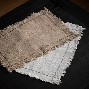 亚麻餐垫布小众复古简约流苏隔热高级感西餐垫美食摆拍桌布餐巾布