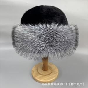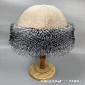 蒙古帽双色女秋冬季棉帽保暖蒙古帽显脸小百搭护耳大帽檐毛绒盆帽