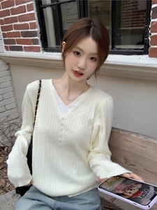 新款假两件内搭打底毛衣外穿女显瘦小香风针织衫杏色上衣