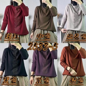 半高领T恤 2025秋季新款 时尚洋气印花长袖上衣女士打底衫2533-5