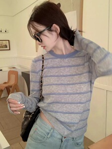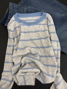 撞色圆领条纹长袖针织衫女秋冬毛衣多巴胺穿搭显瘦设计感小众上衣