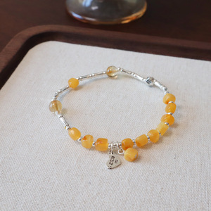 通体S925银天然几何蜜蜡爱心吊坠手链