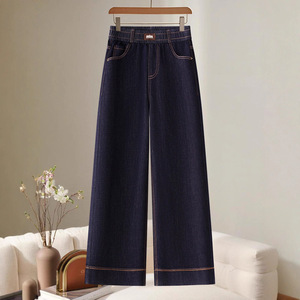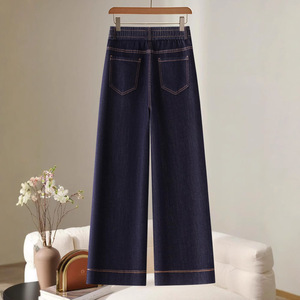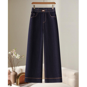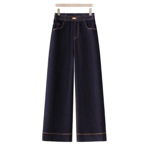 丹宁蓝阔腿牛仔裤女秋季新款松紧高腰复古小个子九分裤直筒裤