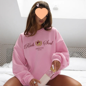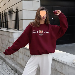 秋冬季欧美风多巴胺上衣百搭气质小众印花圆领加绒加厚保暖卫衣潮