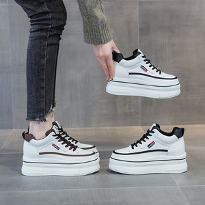 松糕厚底小个子小白鞋女2025秋冬季新款休闲简约加绒坡跟运动鞋女