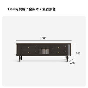 法式复古电视柜客厅实木中古风黑色高款电视机柜组合家用美式地柜