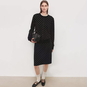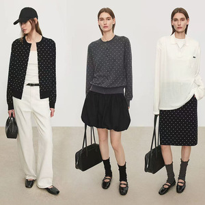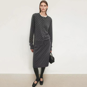 秋冬新款复古双层织提花波点PolkaDots_丝光羊毛 花瓣领开衫/半裙