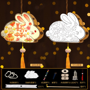 中秋节灯笼儿童diy手绘花灯材料包2025新款创意填色宫灯制作批发
