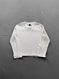 高质量Derschutze跨境美式刺绣樱花华夫格长袖t恤打底衫圆领上衣