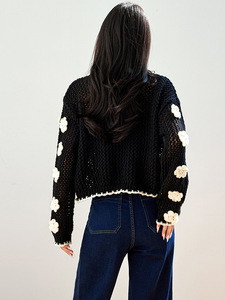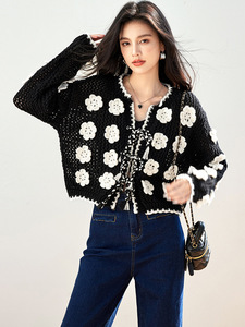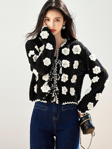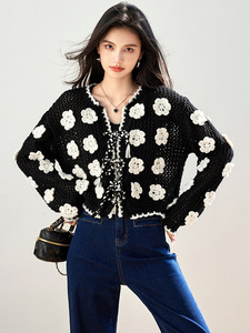 高级感立体钩花开衫毛衣外套女士秋冬复古宽松设计感小众针织上衣