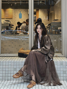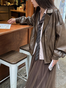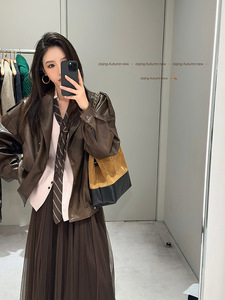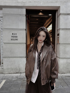 ZQ子晴 旧梦摩卡'深棕色西装皮衣女秋季新款小众高级感宽松外套