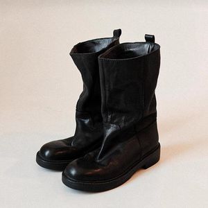 英伦风厚底烟筒靴女2025春秋中筒显瘦中筒骑士靴瘦长靴