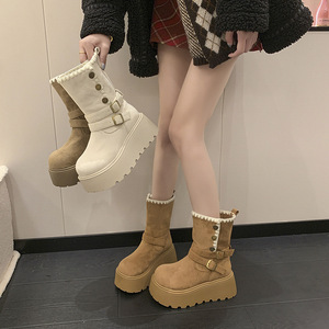 复古增高短靴女士厚底雪地靴秋冬季两穿加绒中筒马丁靴保暖棉鞋子