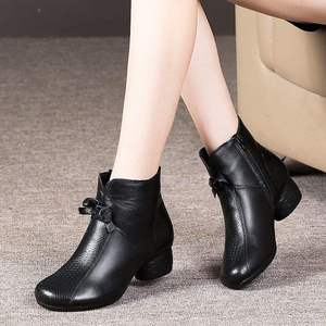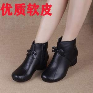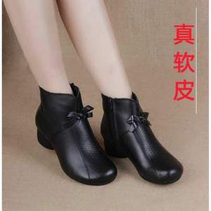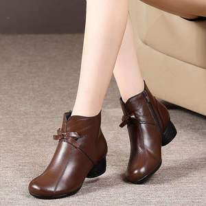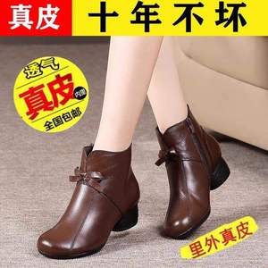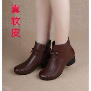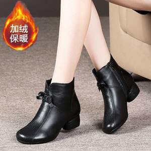 民族风复古短靴女2025秋新款加绒靴粗跟圆头中年休闲妈妈鞋