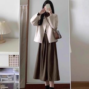 秋季穿搭一整套高级感盐系轻熟斗篷毛呢外套上衣百褶半身裙套装女