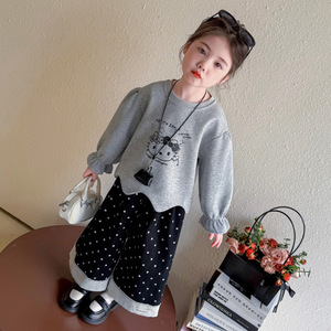 女童秋装卫衣套装2025春秋季新款韩版时尚长袖阔腿裤宝宝早秋衣服