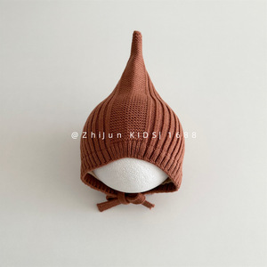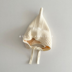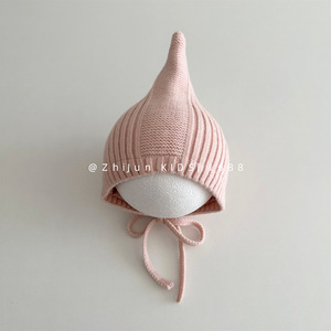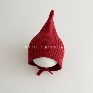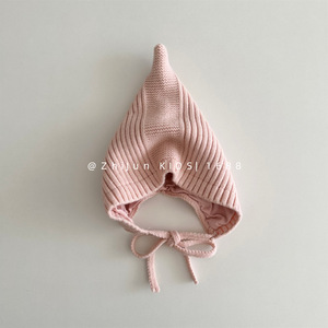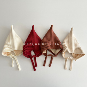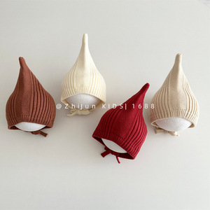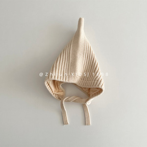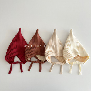 婴幼儿秋冬新款双层针织尖尖系带护耳帽小月龄穿搭保暖精灵帽子潮