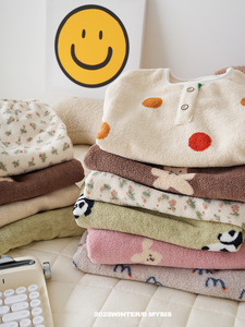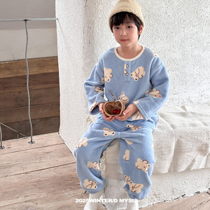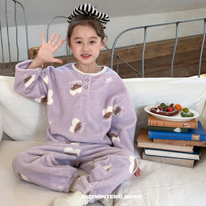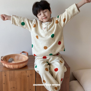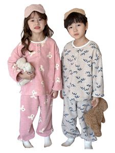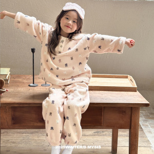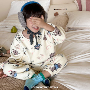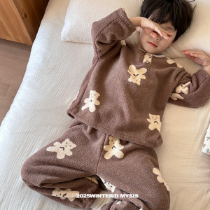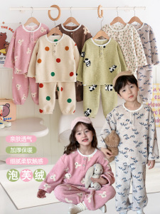 25冬装韩版雪莉绒保暖家居服中大童套装儿童卡通内衣睡衣儿童款