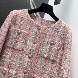 南油直供25秋冬款小香风重工彩色编织粗纺花呢外套洋气多口袋上衣