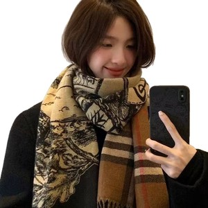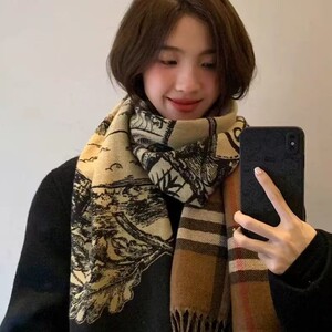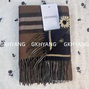 加厚款格子双面羊绒围巾女秋冬季新款流苏保暖外搭披肩围脖高级感