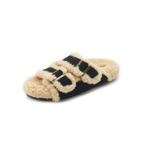 毛毛鞋博肯鞋一字拖鞋女外穿2025秋冬新款休闲皮带扣凉拖鞋子