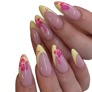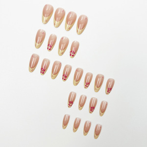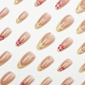 24片中长尖杏仁甲甲片法式欧美跨境亮面红色小花可拆卸穿戴甲