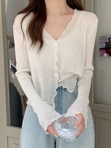 防晒开衫外套女秋季薄款白色外搭小披肩长袖冰丝针织上衣气质罩衫