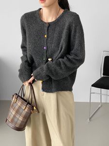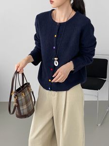 那末 糖果扣毛衣~韩系温柔显白绿色毛衣女圆领软糯显瘦上衣D0835