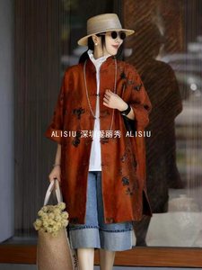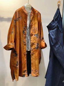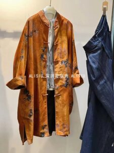 深圳南油新中式腔调香云纱真丝中长外套新中式宽松显瘦百搭长袖衬