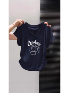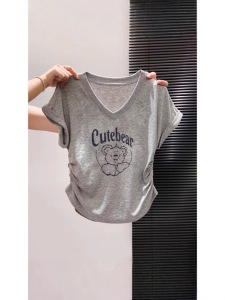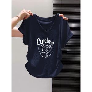 2025新款V领正肩纯棉短袖t恤女士设计感小众收腰显瘦白色上衣夏季