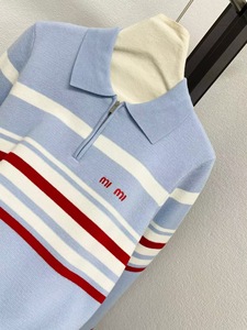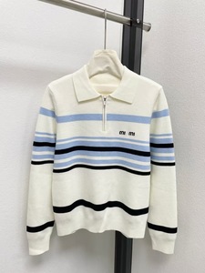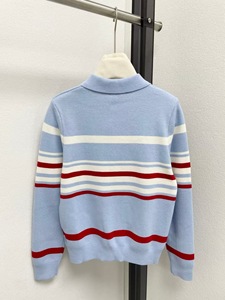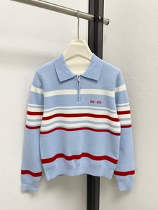 高定MM家25年秋新款半拉链polo领条纹针织衫女宽松羊毛毛衣上衣