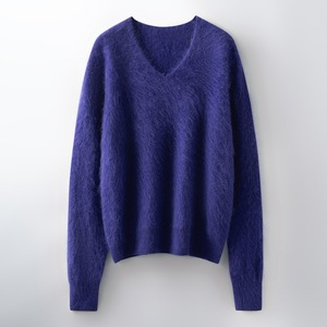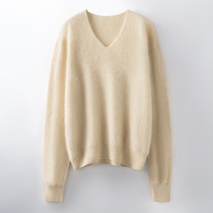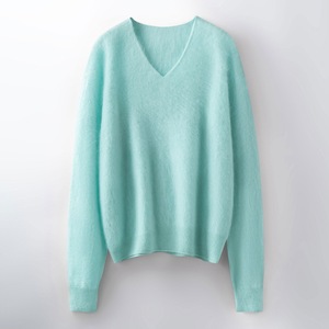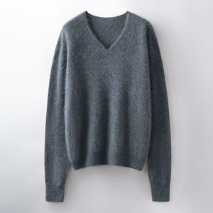 宽松拉绒v领套头羊毛羊绒针织衫秋冬一线纯色百搭打底毛衣上衣新