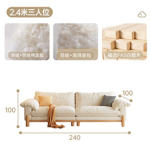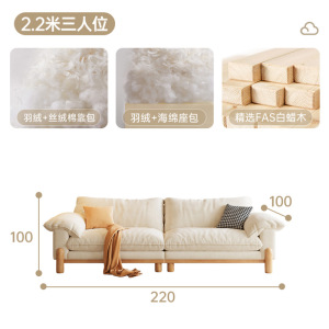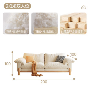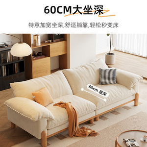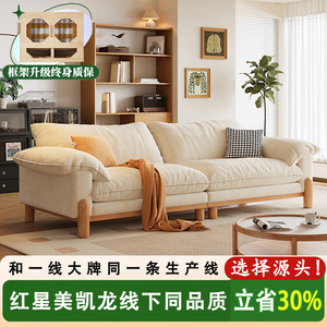法式复古奶油风棉麻布艺沙发简约直排双人小户型家用实木客厅沙发