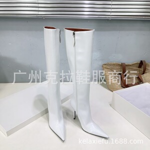 高定2025秋冬新品简易尖头细跟高跟侧拉链高筒骑士靴不过膝长靴女