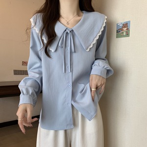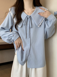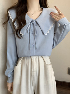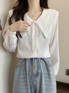 大码法式娃娃领衬衫女春秋季高级感气质减龄白色衬衣长袖上衣胖mm