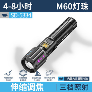 SD-5344A聚泛双光变焦手电【黑色;内置电池1200MAH】