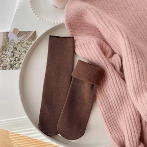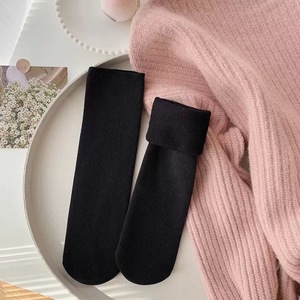 冬季女士雪地袜子秋冬季加绒加厚保暖地板大版月子袜袜竖条中筒袜